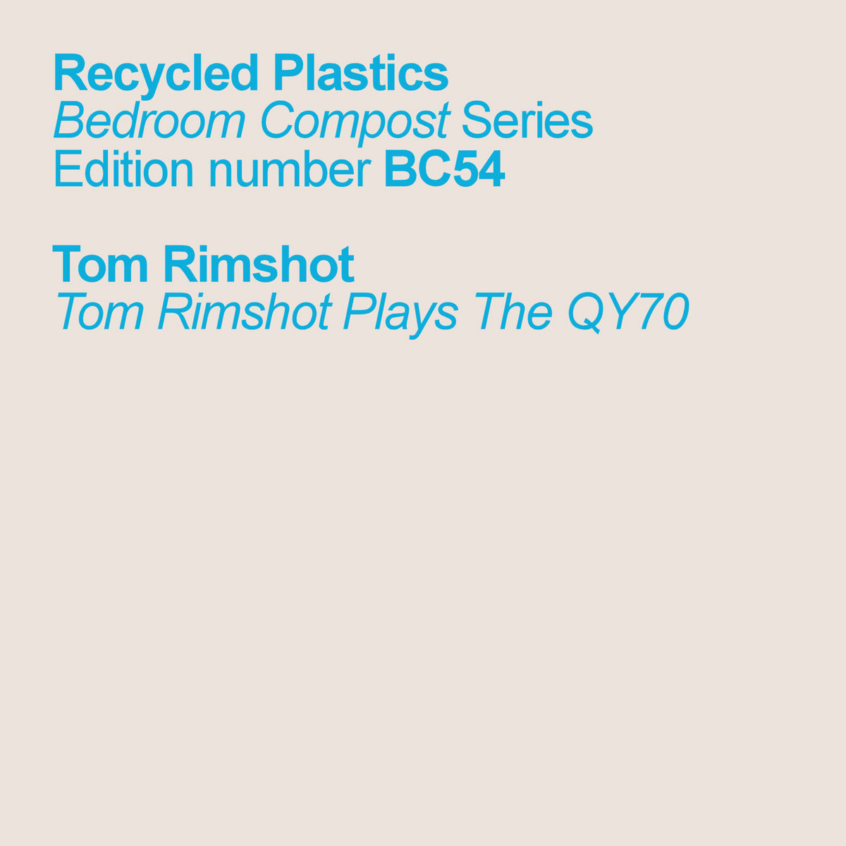 “Tom Rimshot is a new face at Recycled Plastics. He specializes in making dedicated tracks for both dancefloor and deep listening purposes, but when he’s not turning the Yamaha QY70 into rhythmic quicksand, you can call him Brian.”